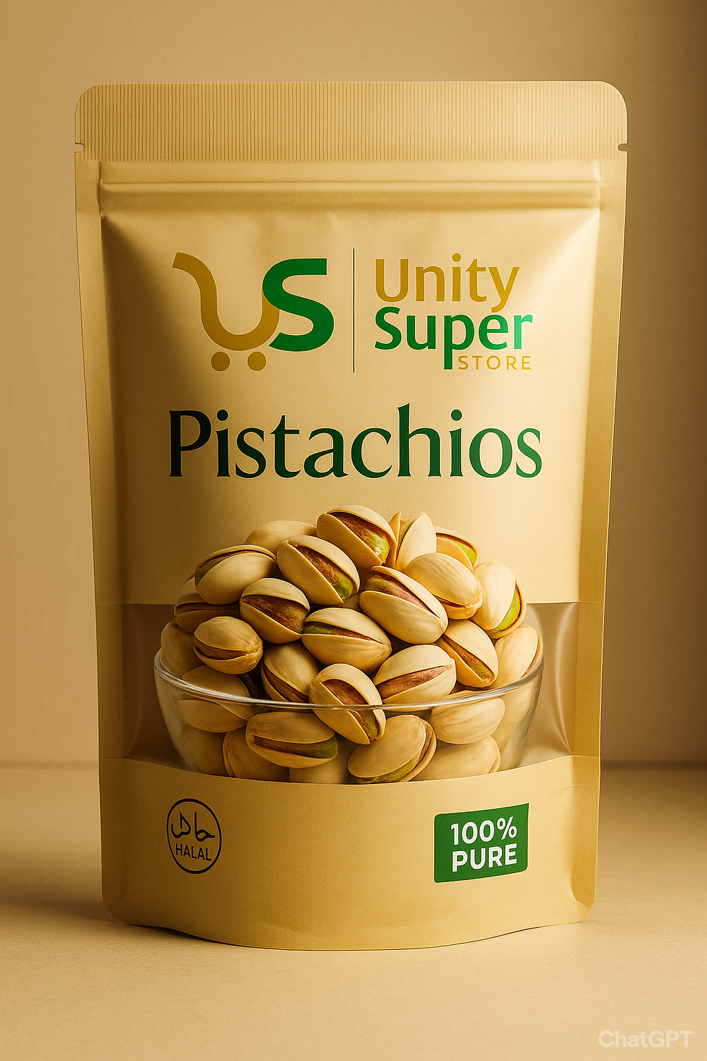 Unity Super Store ensures that our pistachios are organically sourced, free from chemicals, and packed with care to maintain their natural freshness and taste.